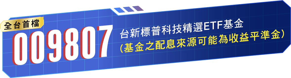 ETF基金與台新標普科技精選行業ETF基金,且任何一方不對投資有關產品的合理性做出任何聲明,亦不就標普500指數與科技精選行業指數的任何錯誤、疏忽或中斷承擔任何法律責任。S&P Dow Jones