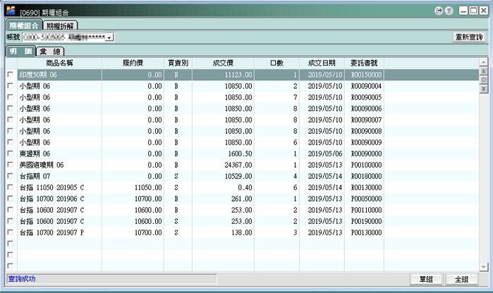 此畫面若保持開啟,若已有新倉成交,則需按下重新查詢鈕,檢視最新資訊。
