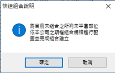 按下全組會顯示快速組合說明,按下確定後即可將帳戶內所有單式部位組合成複式部位。